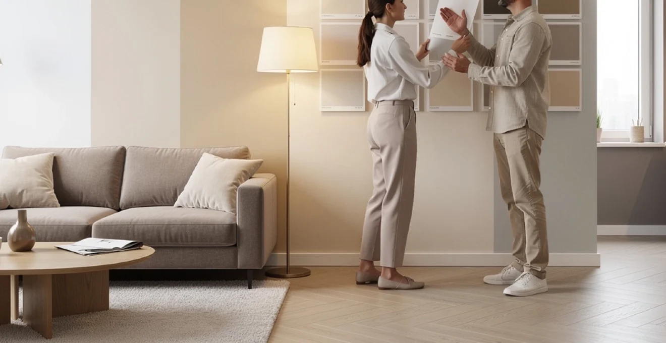 Concrètement, vous pouvez réserver le crème aux surfaces les plus exposées à la lumière (murs proches des fenêtres, plafonds), et graduer les taupes sur les murs de fond, les têtes de lit ou les bibliothèques encastrées. En suivant le principe d’Itten, 60 % crème, 30 % taupe, 10 % accents plus soutenus (bois foncé, noir graphite, laiton) offrent un équilibre visuel optimal. Cette association fonctionne particulièrement bien dans les intérieurs contemporains où l’on souhaite une décoration claire mais avec du caractère, compatible avec des matériaux naturels comme la pierre ou le bois brut.